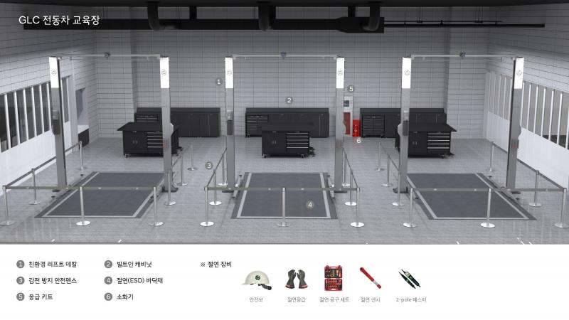천안 GLC 교육장은 상용 및 승용 전기차 정비 공간으로, 최상의 교육 및 정비 서비스를 제공하기 위해 설계되었습니다.